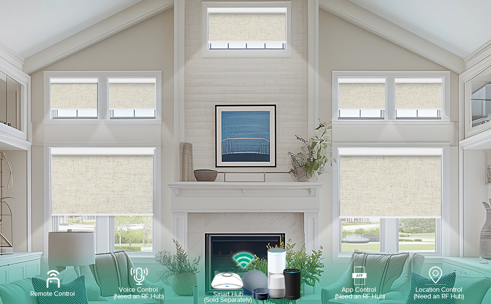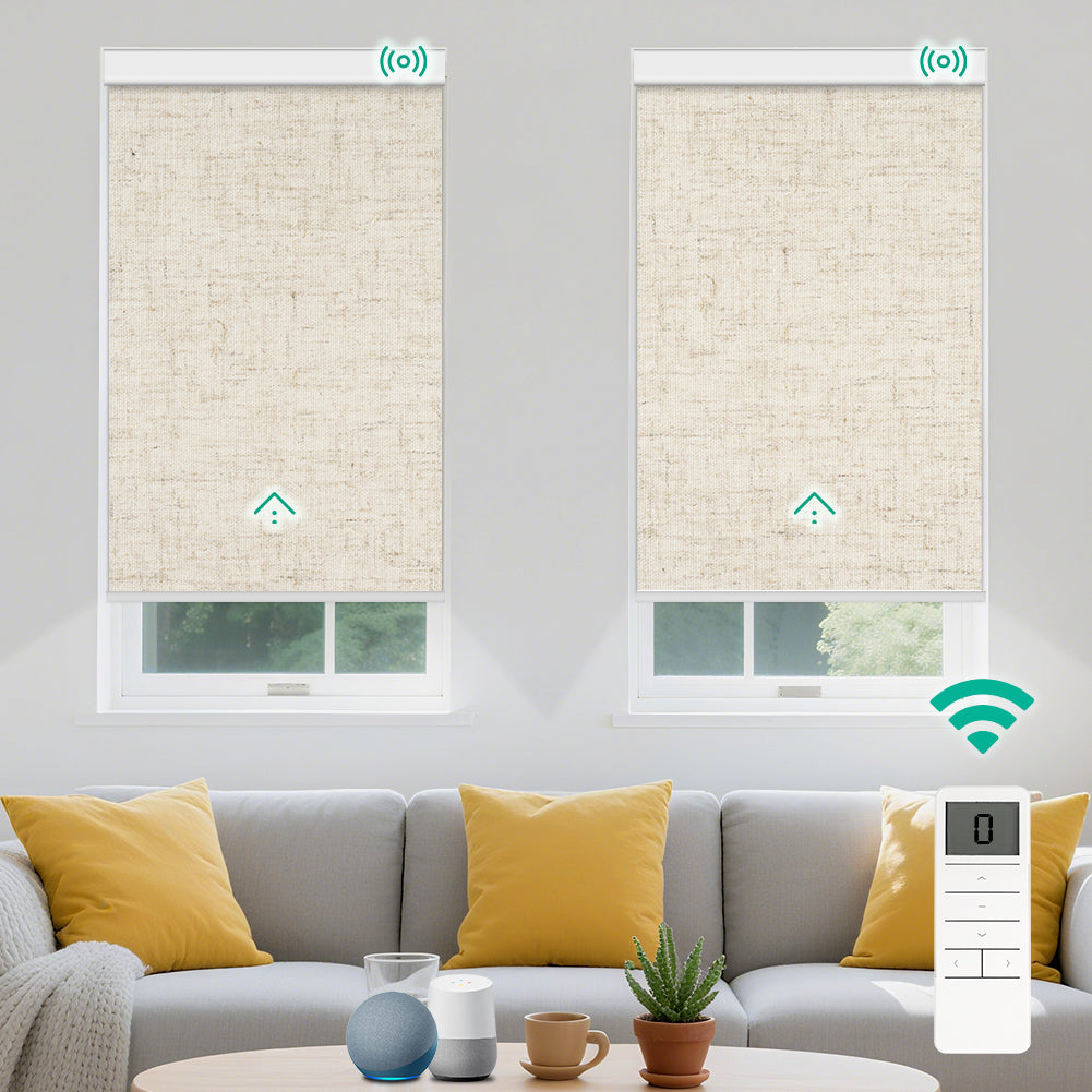 Kilonity Motorized Roller Shades deliver a smart and stylish window solution with 100% blackout fabric for complete light control and privacy. Featuring remote control operation and compatibility with Alexa and Google Assistant via an RF Hub, these electric blinds allow effortless voice and app control. The rechargeable motor ensures quiet, reliable performance without frequent battery changes, while the custom-made design provides a perfect fit for any window. Ideal for bedrooms, living rooms, and home theaters, Kilonity shades combine comfort, convenience, and modern smart home technology.