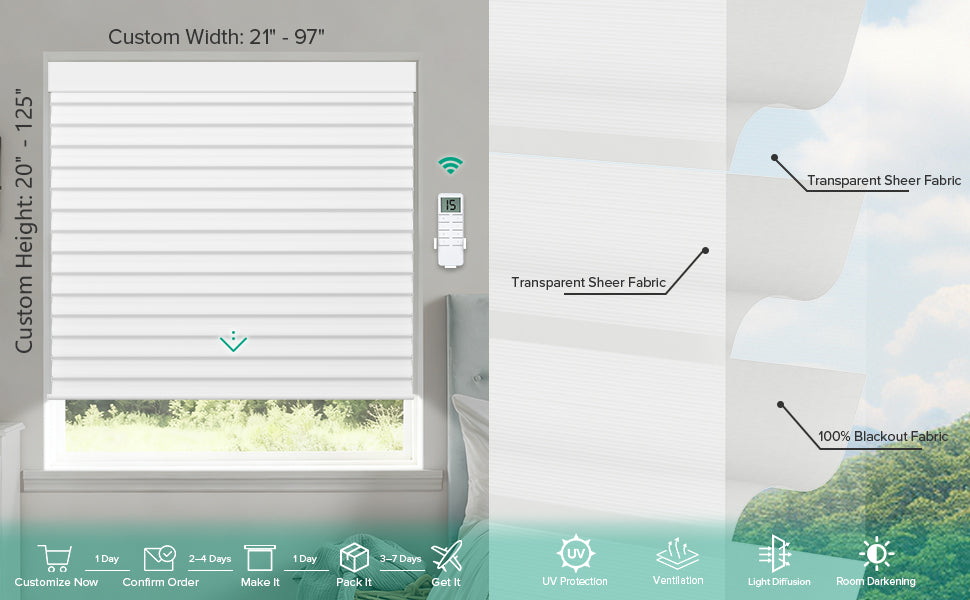 These motorized Shangri-La sheer shades are perfect! The sheer fabric lets in soft light, while the blackout feature keeps the room dark at night. The motor is smooth and the remote makes adjusting so easy. Love the elegant design!