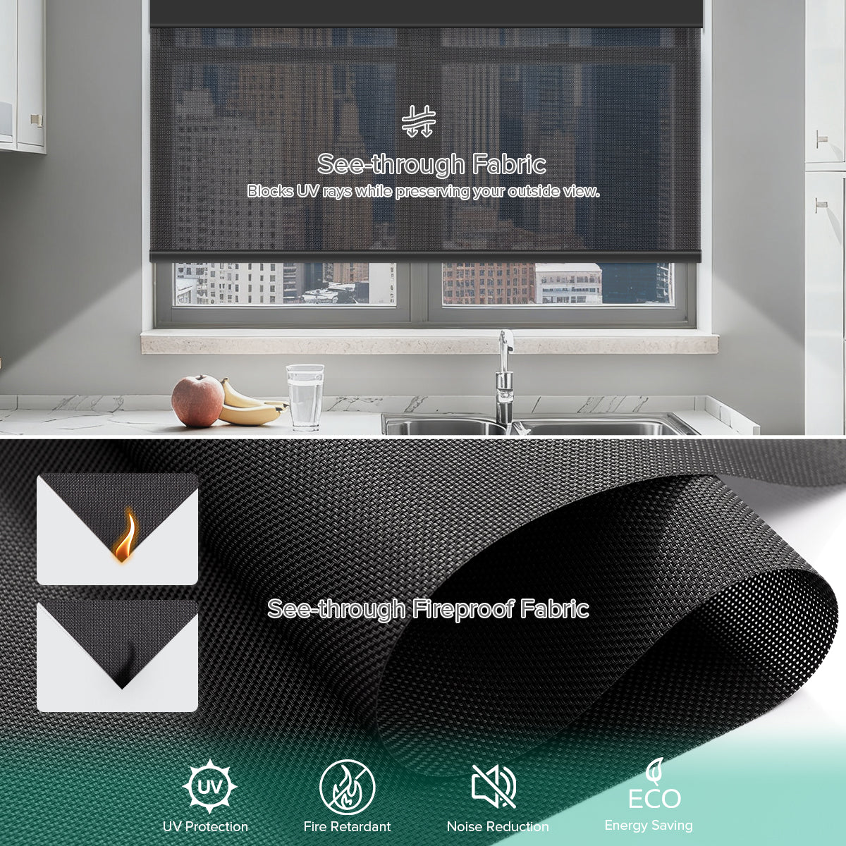 I’m really impressed with these motorized light-filtering fireproof roller shades! They look sleek and modern, and the light filtering is perfect—enough to brighten my room without letting in too much sun. The fireproof feature gives me extra peace of mind. The motor works quietly, and I love controlling them with the remote!