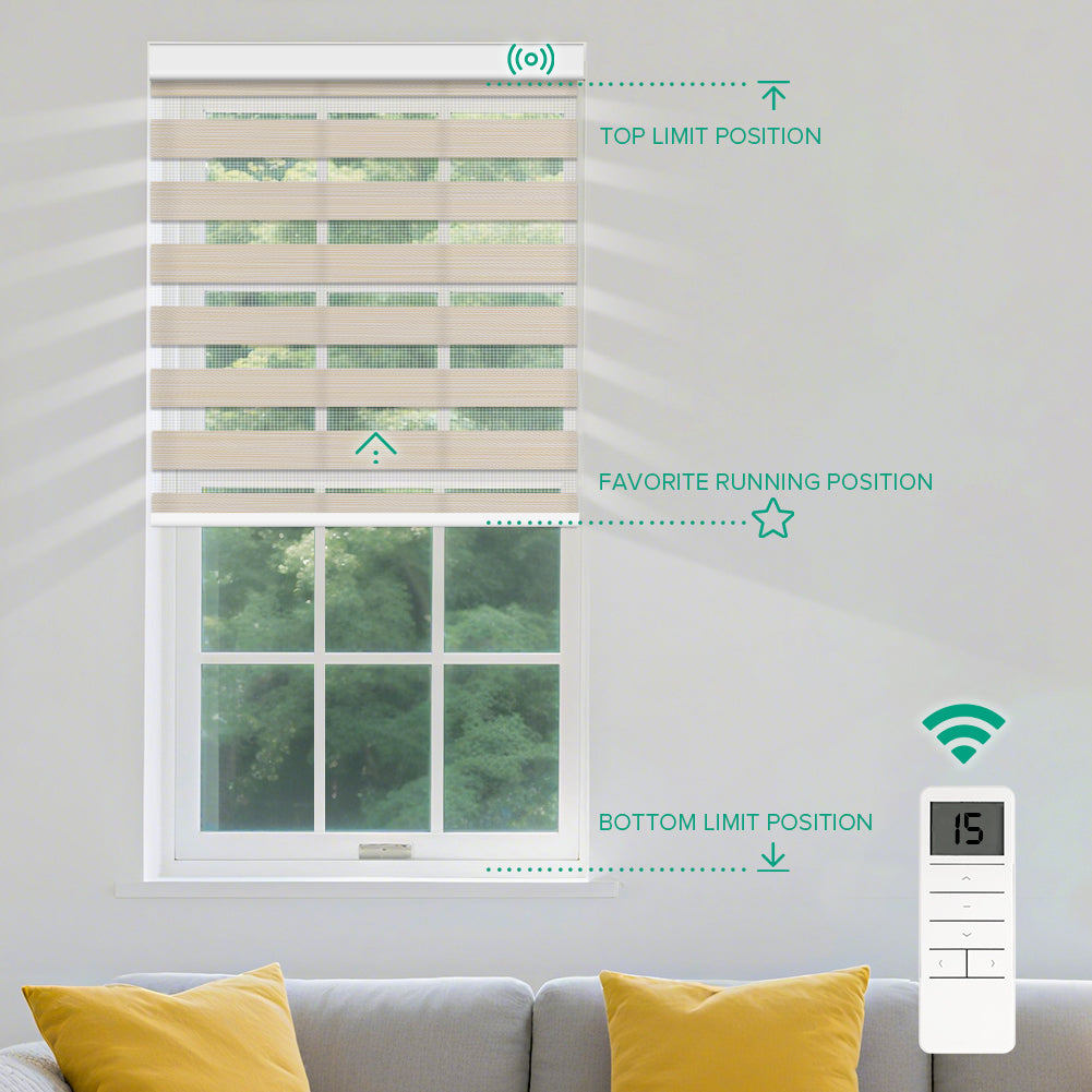 The motorized zebra blinds are the perfect addition to my home. The fabric is durable, and the motor operates quietly. The convenience of controlling them with a remote makes life so much easier, and I love the striped design for a modern touch. They really help in controlling light and maintaining privacy. I couldn’t be happier with them!